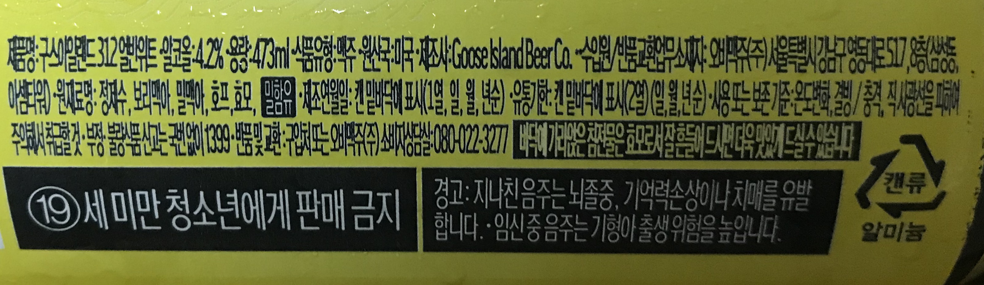 1. 제품명 : GOOSE 312 URBAN WHEAT ALE (구스 아일랜드 312 어반 휫 에일)