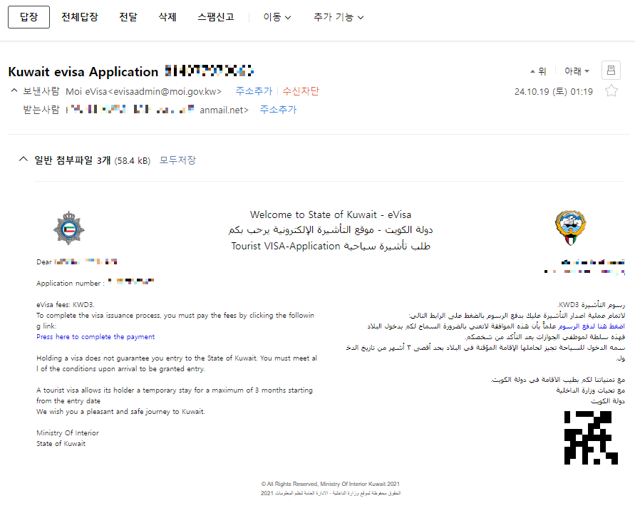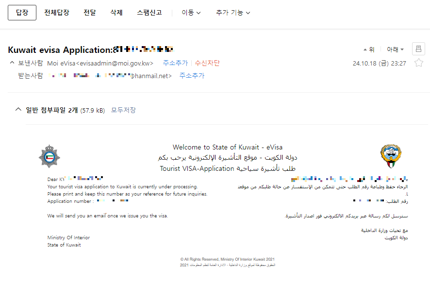 쿠웨이트 이비자(Kuwait e-visa) 신청이 됐다는 메일이 왔다.
