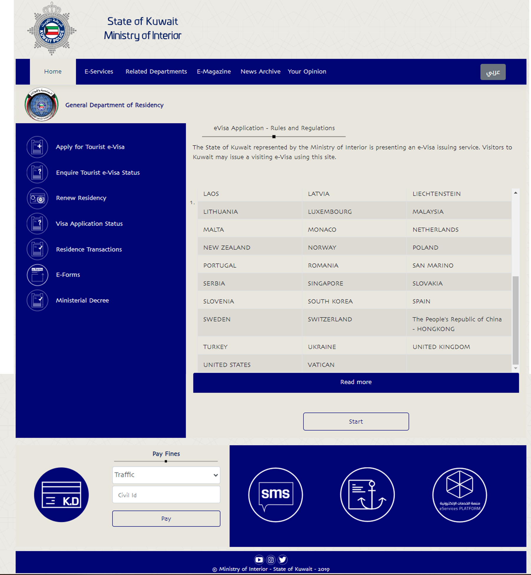 쿠웨이트 이비자를 검색하면 대행하는 업체가 마치 자기네가 공식 사이트인 것처럼 나오는 경우가 있다. 괜히 수수료 많이 낼 수 있으니 조심해야 한다.