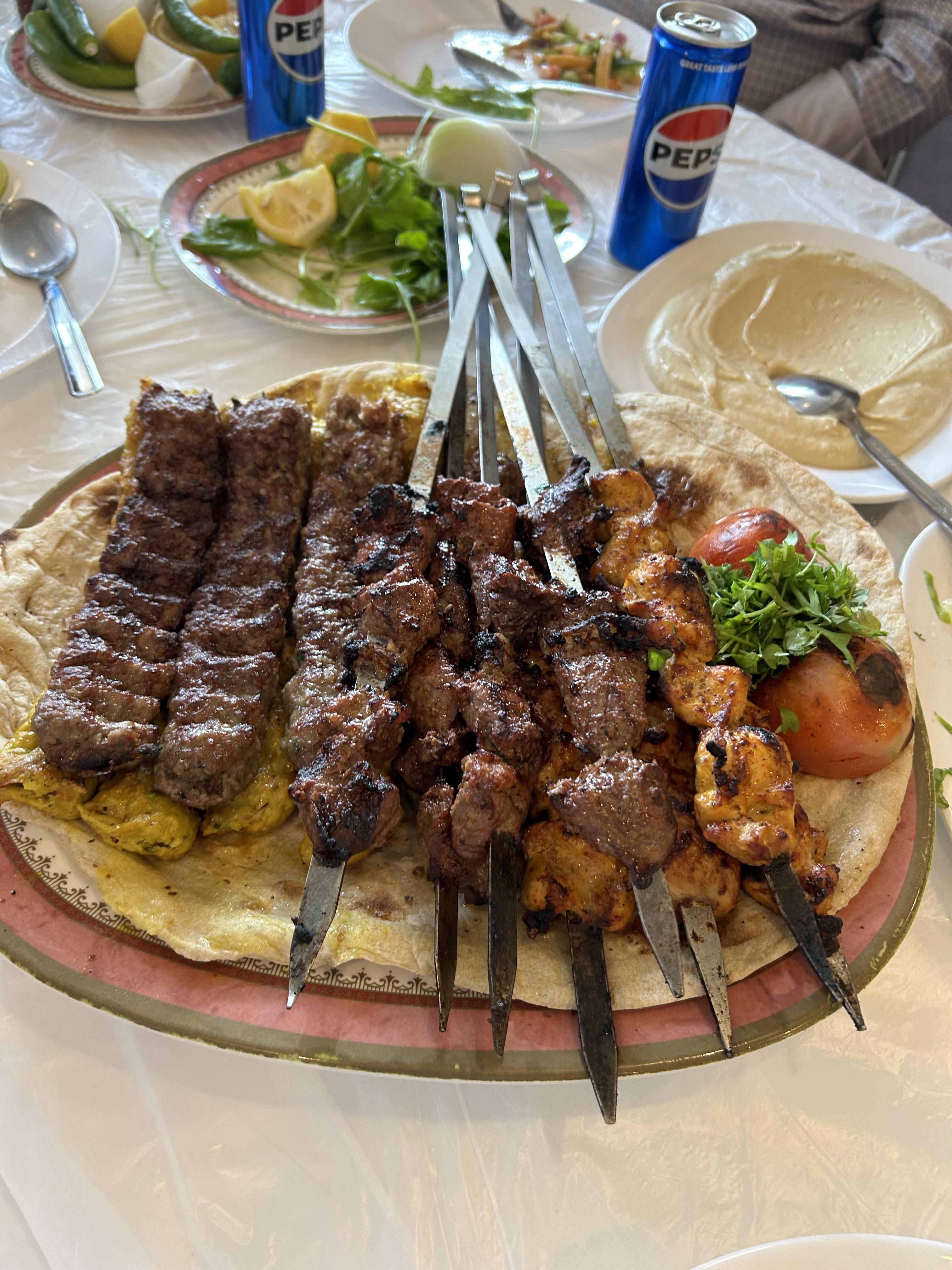 이런데 가면 기본적으로 캐밥(꼬치구이)류, 훔무스(Hummus, 피타(쿠브즈?, 납짝빵), 샐러드 뭐 이런 음식을 주로 먹는다.