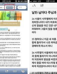 728x90 반응형 iPhone4 아이폰 읽기도구 아이폰 사파리(애플에서 만든 인터넷 탐색기)를 열면 페이지에 따라 주소창에 "읽기도구"가 생기는 경우가 있다. 정확이 어떤 경우에 생기는지 모른다. 이 "읽기도구"를 터치하면 보기좋게 글자 크기를 키워주고 인터넷 페이지에 나오는 쓸데없는(본문 읽기와 관계없는) 내용은 다 사라진다. 물론 본문에 있는 사진은 나온다. 작은 핸드폰 창으로 읽을 때 참 유용하다. 2013. 8. 28. 아이폰에서 QT하기 인터넷 선교단체 SWIM(Society for World Internet Mission, http://www.swim.org)에 가면 여러가지 QT를 제공해준다. 나는 그중 매일성경으로 QT를 한다. 사파리에 즐겨찾기를 해도되지만 매일 사파리 가서 즐겨찾기 가고 하는 것 조차 귀찬아 바탕화면에 어플처럼 만들어 놓았다. 그 방법을 설명하겠다. 이 방법은 다른 사이트도 다 되니 보고싶은 글이나 자주가는 사이트 같은 경우 홈 화면에 추가해 놓으면 편리하다. 먼저 사파리를 열고 아래 주소를 쳐 넣는다. 물론 컴퓨터에서 문자, 메일, 카카오톡, 기타 메신져를 통해 내 핸드폰으로 보내고 터치해서 열어도 된다. 알아서들 하시길... SWIM 제공 매일성경 주소 http://qt.swim.org/user_dir/dai.. 2013. 8. 27. 아이폰 사진 컴퓨터로 옮기기 아이폰으로 찍은 사진을 컴퓨터로 옮기는데 아이튠즈는 참으로 답답합니다. 아이튠즈 왜 이리 느린걸까요... 그래서 저는 주로 메일로 보내거나 네이버 N드라이브 같은 걸 이용합니다. 그런데 이것도 메일보내는 시간이나 업로드하는 시간도 답답한경우는 그냥 케이블로 아이폰을 컴퓨터에 연결합니다. 그러면 사진만은 카메라로 인식을 해서 파일을 복사해서 옮길 수 있습니다. 2011. 10. 12. 아이폰으로 "나는 꼼수다" 듣기 아이폰을 가진 친구들이랑 이야기를 하다보면 아이튠즈란게 뭔지 모르는 애들이 너무 많아서 요즘 장안의 화제 "나는 꼼수다"를 들어보면서 아이튠즈를 활용하는 방법을 설명하려고 합니다. 1. 먼저 아이튠즈(iTunes, 보라색 음표 그려진 아이콘) 터치합니다. 2. 들어가면 "What's Hot"으로 갑니다. 우리가 들으려는 건 딴지니까, Top 10으로 갑니다. 요즘 1등이니까요. 제일 위에 있는 "iTunes"(이건 아마 종합순위인것 같습니다.)나 아래로 내려보면 "뉴스 및 정치" 카테고리에서 "나는 꼼수다"를 찾습니다. 3. 제목(ex: 나는꼼수다20회)을 클릭하면 스티리밍 바로듣기가 되고 무료→다운로드 클릭하면 아이폰으로 다운로드를 합니다. (단 wifi zone 안에서만 가능) 4. 다른방법으로 찾기.. 2011. 9. 28. 이전 1 다음 728x90 반응형