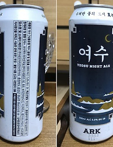 1. 제품명 : ARK YEOSU NIGHT ALE (아크 여수)2. 원산지 : 대한민국3. 알코올 : 5.0 %4. 원재료 : 정제수, 보리맥아(독일, 덴마크, 네덜란드 등), 효모, 보리(전라남도산), 이산화탄소, 홉(미국산, 독일산), 산도조절제5. 제조 회사 : 코리아크래프트비어(주) (홈페이지 링크)6. 맥주 종류 : Ale (회사 소개 링크)ABV : 5.0%, IBU : 28 CATEGORY : ARK, Can ABOUT THIS PROJECT : 여수 나이트 에일봄 바다의 부드러움을 고스란히 담아낸 아크 ‘여수’ 맥주. 아크 ‘여수 나이트 에일’은 수려한 물의 도시인 여수 바다를 떠올리게 하는 맑고 짙은 색상의 엠버 에일로, 전라도산 보리를 사용한 고소하고 담백한 맛이 특징이다. 카라멜 몰..